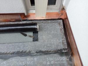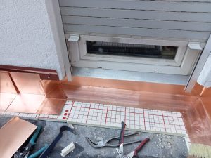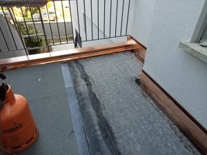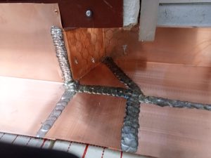 - DURANTE I LAVORI: posa di guaina bituminosa, risvolti verticali e saldature a stagno su rame;