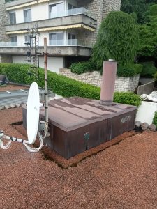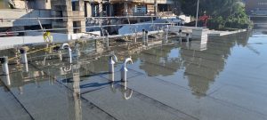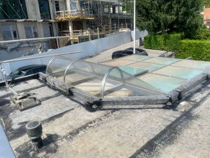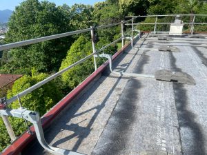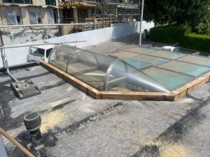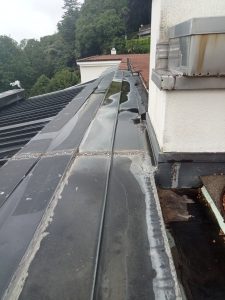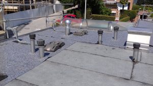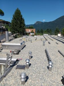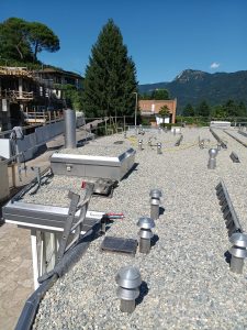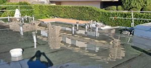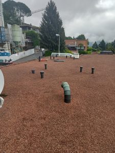 - DURANTE I LAVORI: rimozione delle vecchie guaine e del materiale isolante degradato, posa di un nuovo sistema multistrato impermeabilizzante con test di tenuta, installazione di nuovi bocchettoni, aeratori e accessori tecnici, prefabbricazione e posa di nuove scossaline in lamiera d’acciaio inox;