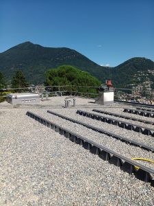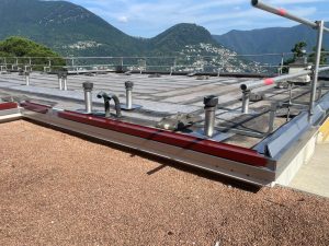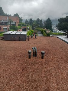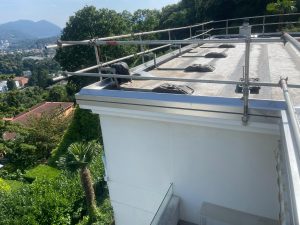 In questo intervento ci siamo occupati del rifacimento completo della copertura piana di un complesso residenziale situato a Porza. L’obiettivo principale era migliorare le prestazioni dell’edificio dal punto di vista dell’isolamento termico e della tenuta all’acqua, attraverso la rimozione dei vecchi strati, l’applicazione di nuove stratigrafie isolante e impermeabilizzanti, nonché la posa di uno strato zavorrato con ghiaia tonda. Il tutto accompagnato da una nuova lattoneria su misura, realizzata per valorizzare il risultato finale con un’estetica pulita e coerente con il contesto architettonico.